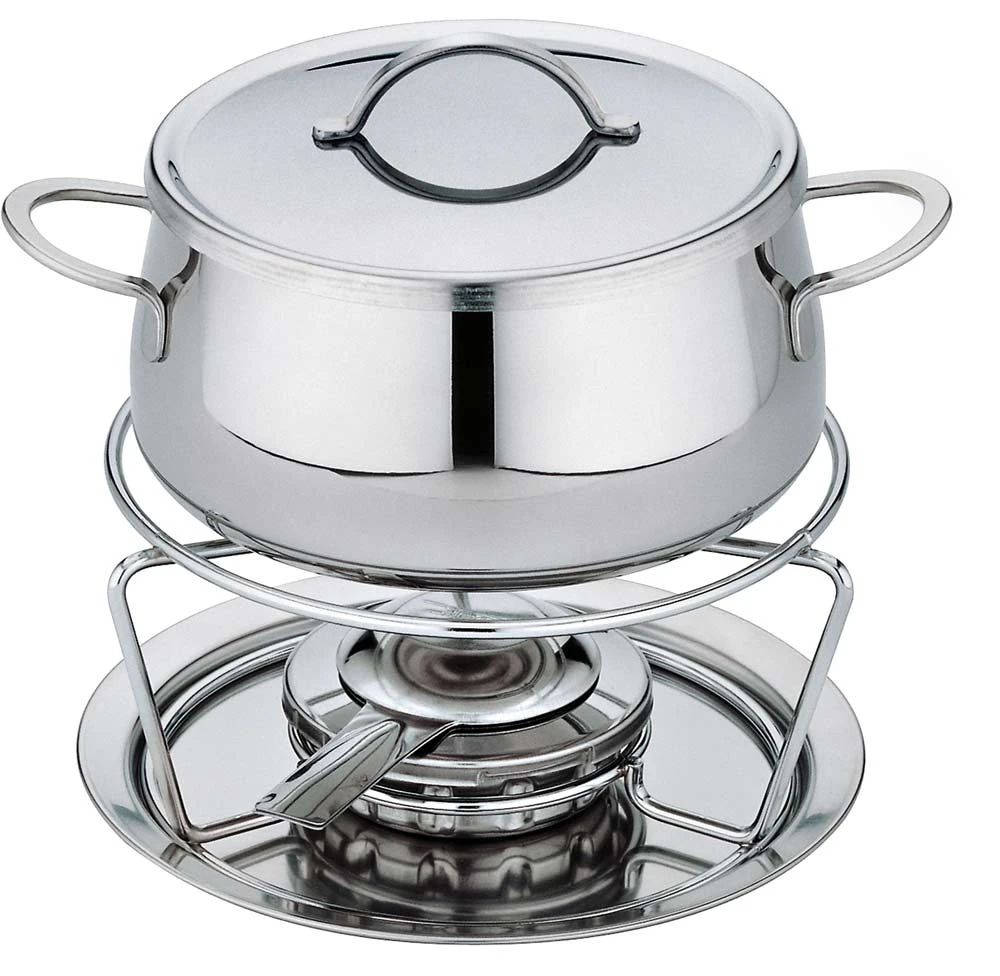 Der Fromage Inox Fondue Topf ist der einzige Fondue Topf mit induktionsfähigem Sandwichboden, der sowohl für Fleisch- und Käsefondue verwendet werden kann. Der Fondue Topf ist aus poliertem Edelstahl.